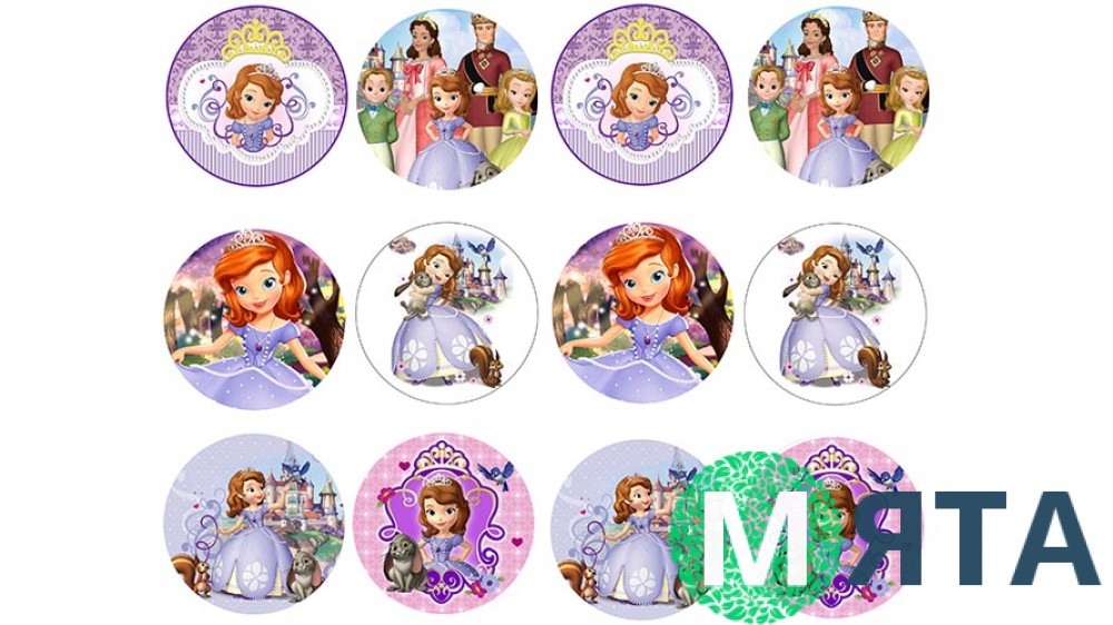На радість усім маленьким принцесам ми зібрали цілу колекцію їстівних картинок у тематиці мультсеріалу «Софія Прекрасна». І ось саме одна з них. На цій харчовій картинці є відразу дванадцять міні-картинок, якими можна прикрасити пристойну партію капкейків або ж набір печива та пряників. Тим більше, що на всіх цих маленьких картинках різні зображення, що додасть кожному окремому виробу свою особинку або «родзинку». Тут можна побачити і саму молоду Софію, і її друзів. Готова випічка, декорована подібним чином, стане чудовим частуванням для солодкого застілля на будь-яких посиденьках і святах.