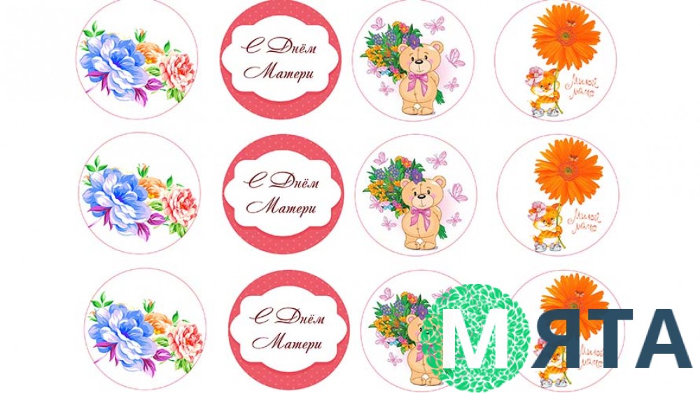Наймиліша їстівна картинка, приурочена до одного сонячного та світлого Дня - до Дня матері. Ця картинка стане чудовим декором для цілого набору солодких десертів, таких як капкейки, пряники, печива. На дванадцяти маленьких картинках зображені ніжні ведмедики, сором'язливі кошенята, гарні метелики, квіти та багато іншого. Тільки уявіть щасливу усмішку своєї дорогої мами, коли Ви подаруєте їй такий цікавий та оригінальний подарунок! Особливо, якщо ця випічка буде приготовлена Вашими руками, що люблять. Вже давно перевірено часом, що немає приємнішого подарунка, ніж зроблений власноруч.