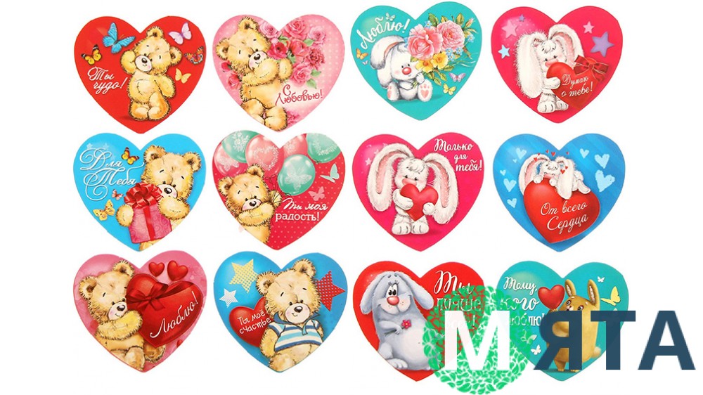 На 1 аркуші формату А4 розташовано 12 валентинок з милими звірятками.