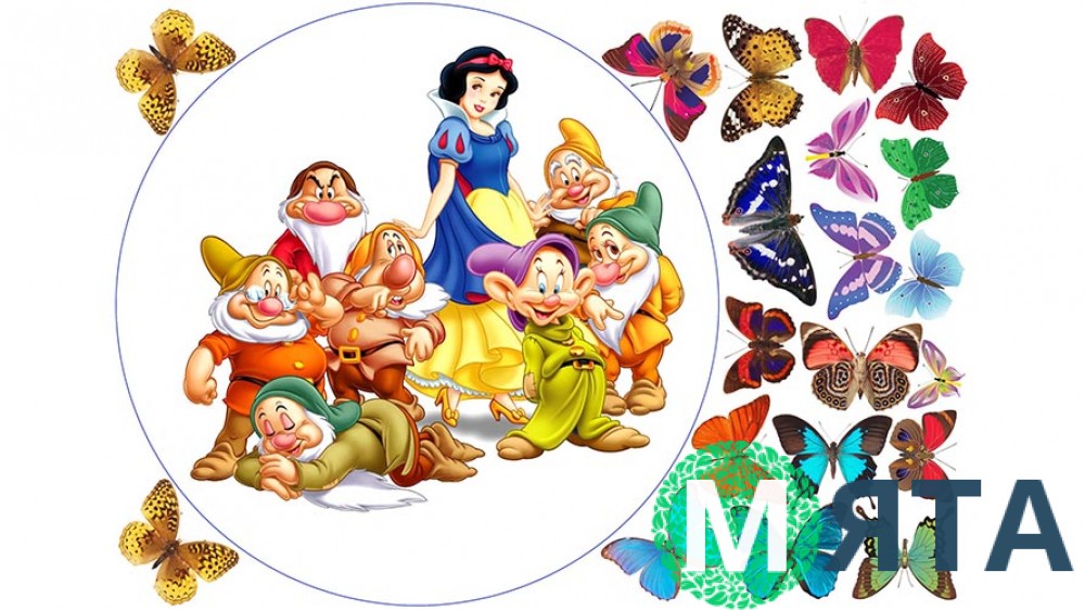 Казку про милу Білосніжку люблять багато малюків по всьому світу. Якщо і Ваша донька, молодша сестричка або плем'янка не виняток, то ця харчова картинка саме те, що може стати в нагоді. Тут зображена сама принцеса Білосніжка серед своїх друзів - сімох гномів. Тільки уявіть щиру радість малюка, коли вона побачить на своєму святі тортик, прикрашений цією картинкою. Харчові картинки в тандемі із солодкою випічкою здатні творити неймовірні смачні шедеври, якими захоплюються не лише діти, а й дорослі. Причому приємно не тільки їсти такі частування, а й створювати їх власноруч. З таким видом декору Ви зможете швидко і без особливих зусиль прикрасити свою випічку.