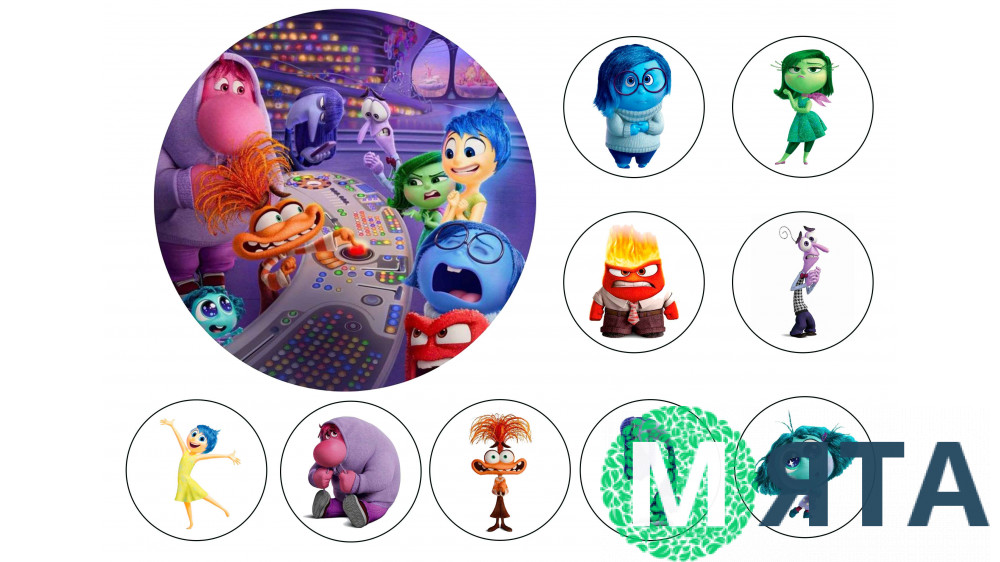 Зустрічайте – Страх, Смуток, Гидливість, Радість та Гнів! І це не просто перелік випадкових емоцій, це головні персонажі оскароносного мультфільму «Головоломка». Цей мультфільм заслужено отримав свою нагороду, бо він зміг дуже вдало і точно зміг розкрити, що відбувається в голові і в душі у одинадцятирічної дитини на порозі перехідного віку. Так що цей мультфільм зміг полюбитися і дітлахам, які ось-ось відчують або вже зараз відчувають на собі щось схоже, і дорослим, які ностальгують і згадують, як відчували те саме. Так що, прикрасивши свою випічку – тортик і капкейки – цією їстівною картинкою будьте певні, що вона догодить усім віком!