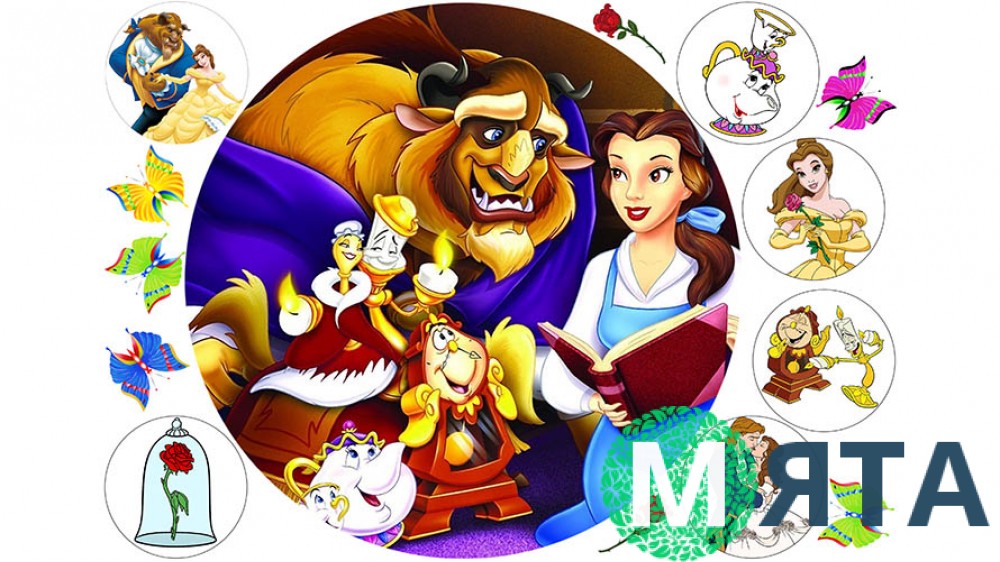 По-справжньому казкова їстівна картинка, створена за мотивами диснеївської екранізації відомої повісті «Красуня і Чудовисько». Якщо Ви маєте організувати тематичну дитячу вечірку в стилі цього мультика або у Вашої власної маленької принцеси незабаром іменини, то саме ця харчова картинка стане Вашим головним і найкращим помічником. Вона якнайкраще сприятиме створенню відповідного солоденького частування для урочистого столу. Адже тут є все, що потрібно і навіть трохи більше. Сама незвичайна пара – красуня Белль та принц-чудовисько, а також їхні зачаровані друзі: Люм'єр, Фіфі, Когсворт, мадам Поттс та маленький Чіп стануть чудовим декором для тортика та кількох капкейків.