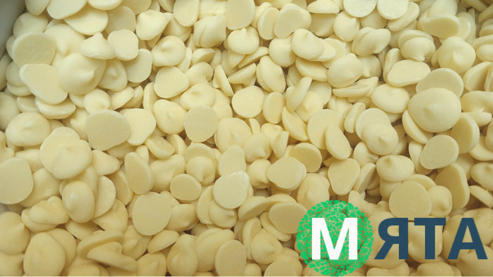 Білий шоколадний кувертюр із вмістом какао 29,7%.