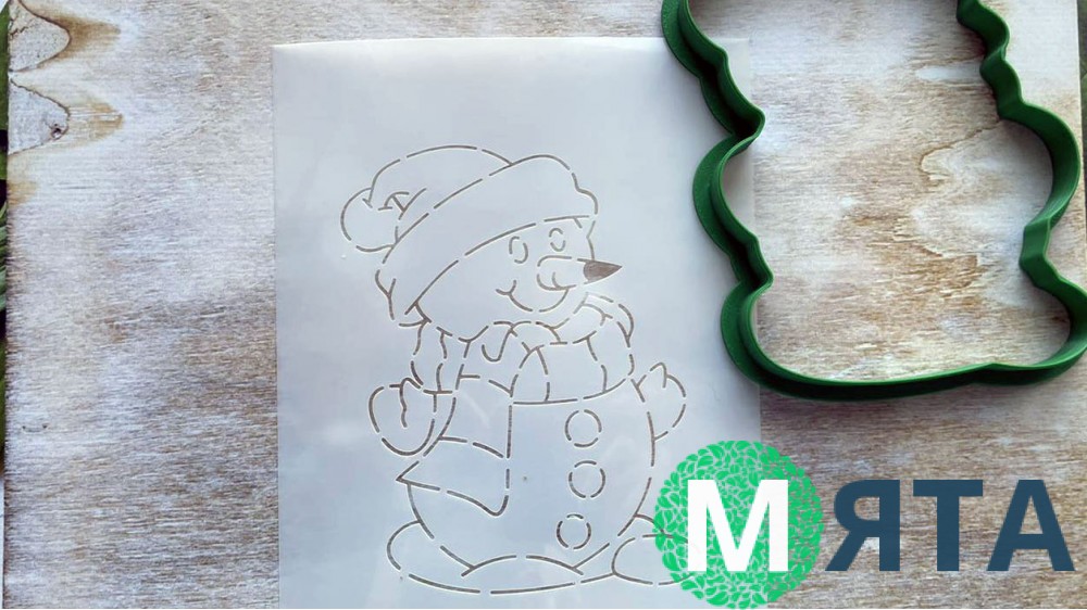 Вирубка + трафарет Сніговик №4