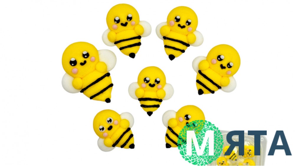 Набір цукрових прикрас Солодкі бджілки складається із семи елементів 3 х 2 см.