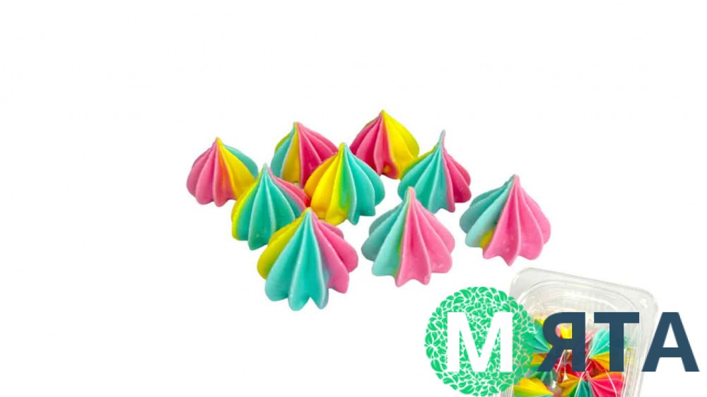 Склад: цукор білий, яєчний альбумін, регулятор кислотності Е330, ароматизатор харчової "Ваніль", гуарова камедь Е412, сорбінова кислота Е200, харчовий барвник.