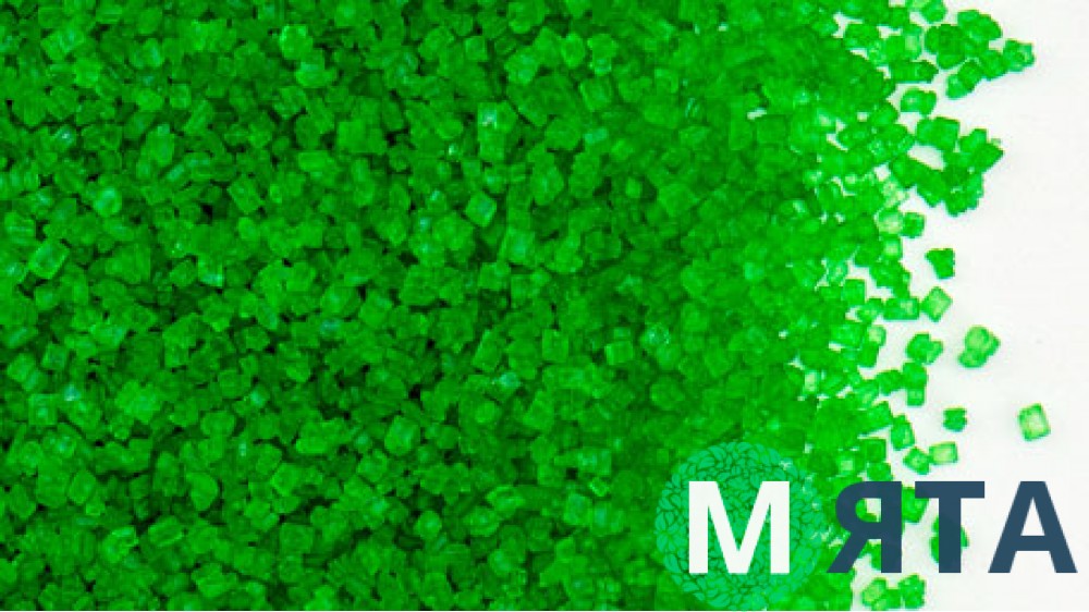 Незвичайний декор для кондитерських десертів, пряників, коктейлів. Білий цукор пофарбований харчовими барвниками і покритий спеціальним блиском, не розтікається на виробі. Цукор має однаковий розмір піщин, що полегшує декорування та створює однотонну структуру візерунка з блиском кришталю.