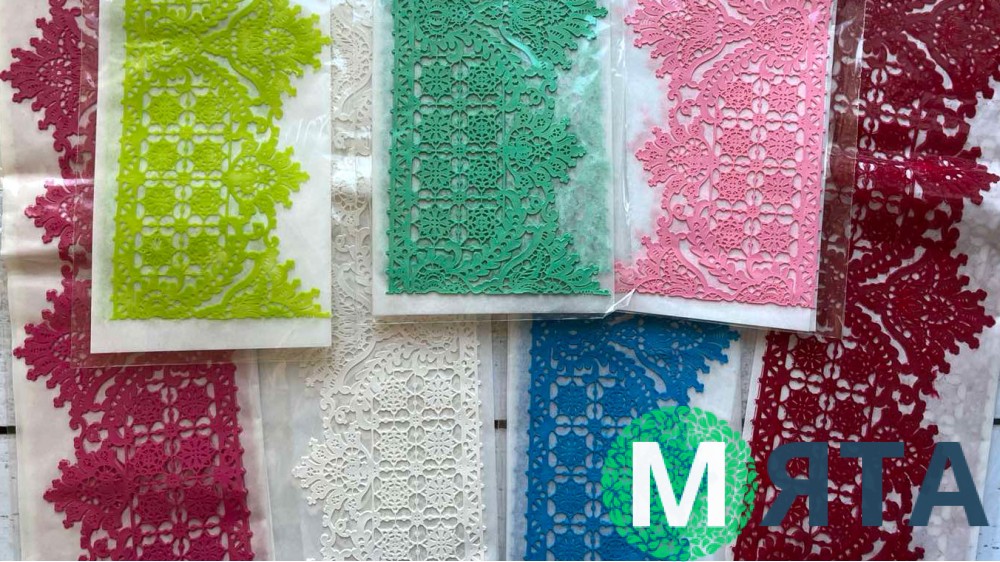 Суху поверхню мережива для торта перед використанням потрібно зволожити водою або цукровим сиропом.