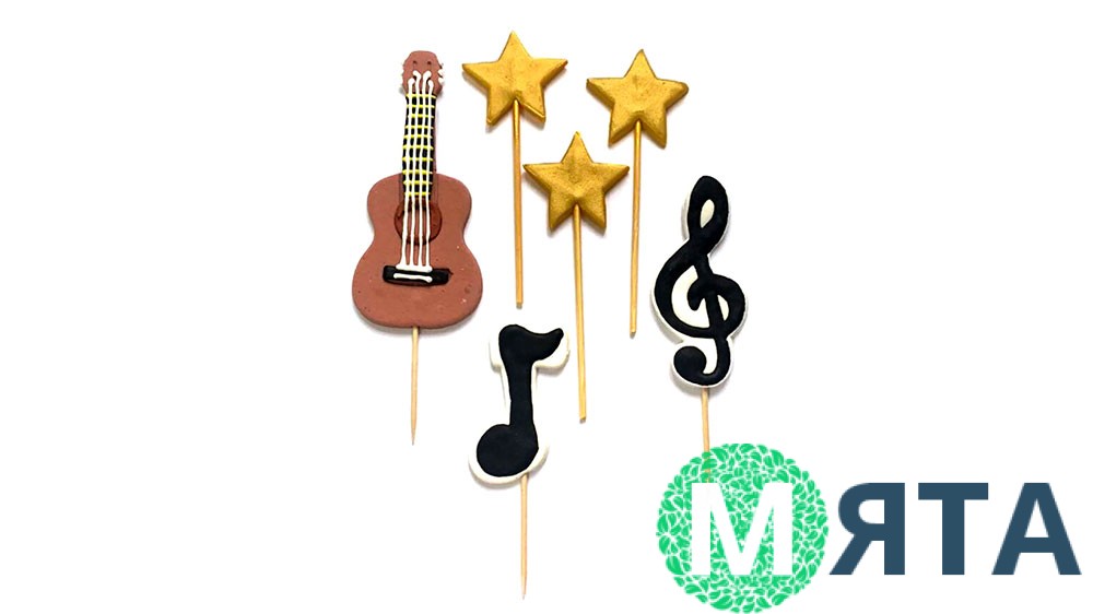 Склад набору: гітара 11*5 см, скрипковий ключ 8 см, нота 6 см, зірки 4 см - 3 см