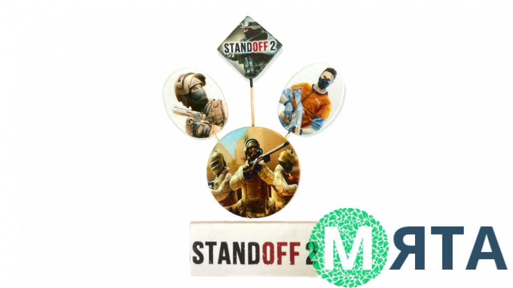 Набір складається з п'яти елементів: логотип прямокутний 12х5 см, логотип ромб 6 см, великий топер діаметром 8,5 см та два топери 7,5х5,5 см.