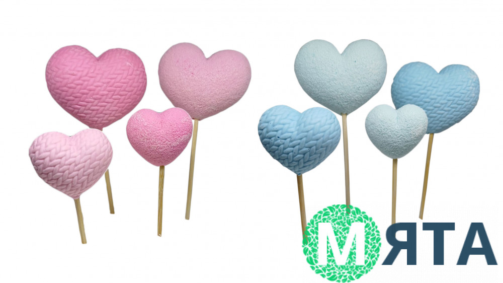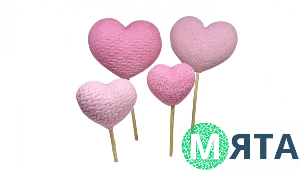 Набір складається з чотирьох шоколадних топерів на шпажках. Два великі серця - 4х5 см, два маленькі по 3х3,5 см. Розміри без урахування шпажек.