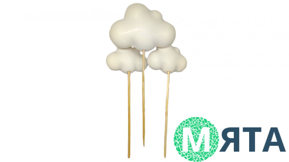 Набір складається з трьох шоколадних топерів на шпажках. Велика хмарка — 6,5 х 4,5 см, дві маленькі по 4,5 х 3,2 см. Розміри без урахування шпажок.