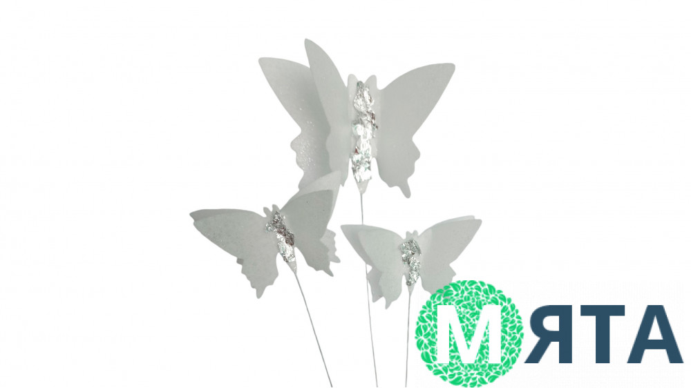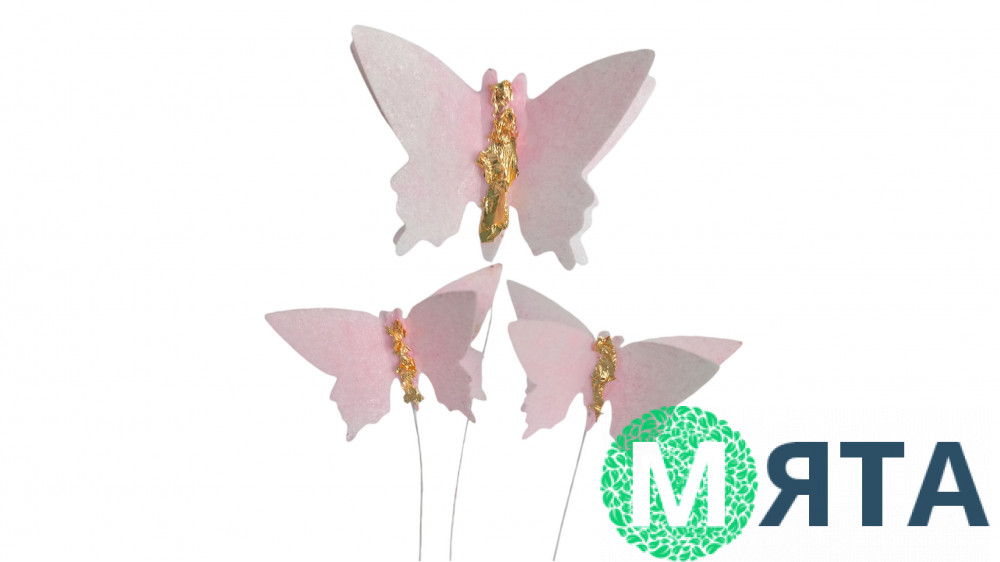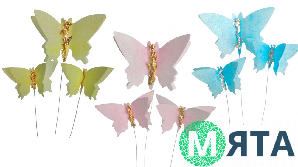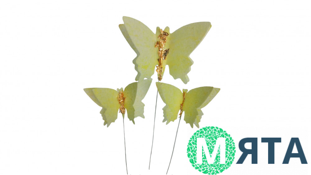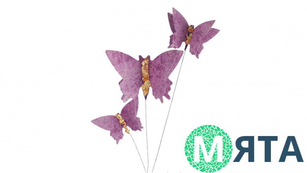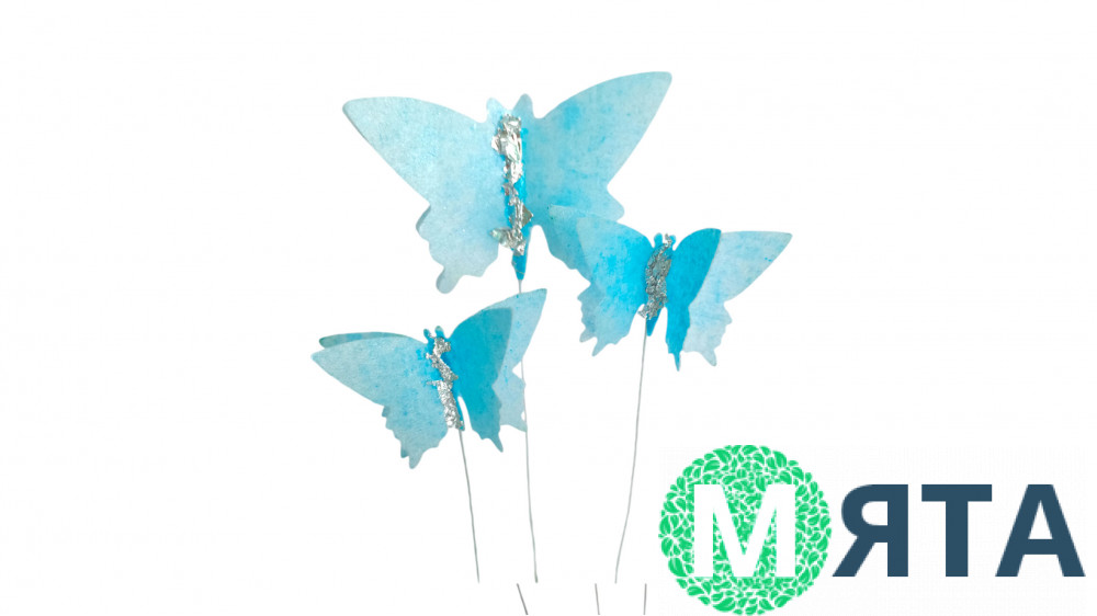 Набір складається з трьох метеликів. Розмір великий – 6,5х4 см, двох маленьких по 4,5х2 см
