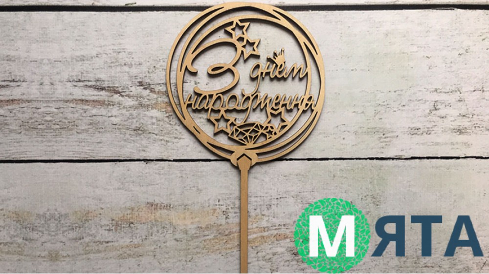 Топпер "З Днем Народження" №3, дерево