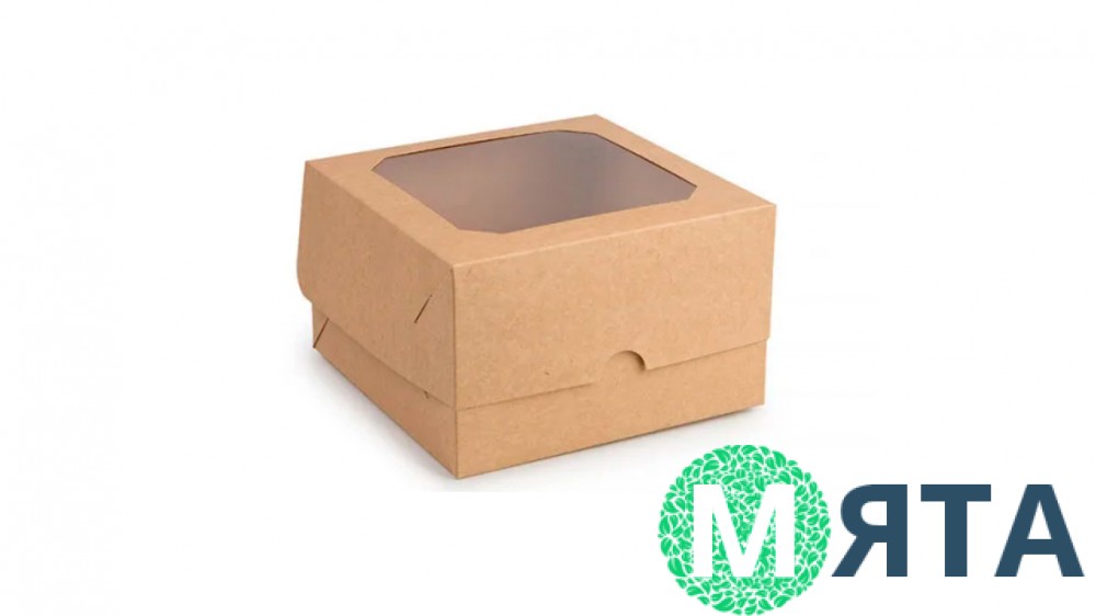 Картонна коробочка з прозорим віконцем та двома вкладками під капкейки