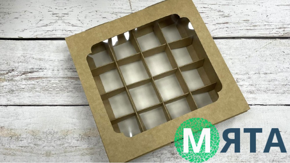 Зроблена з якісного крафт картону, з віконцем із плівки підвищеної міцності.