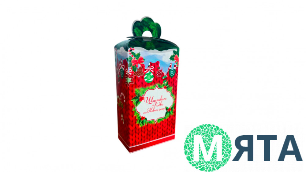 Картонна коробка для подарунків та солодощів з новорічним друком.