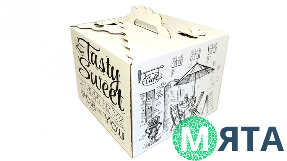 Коробка з білого гофрокартону з принтом популярного розміру 25х25х20 см.