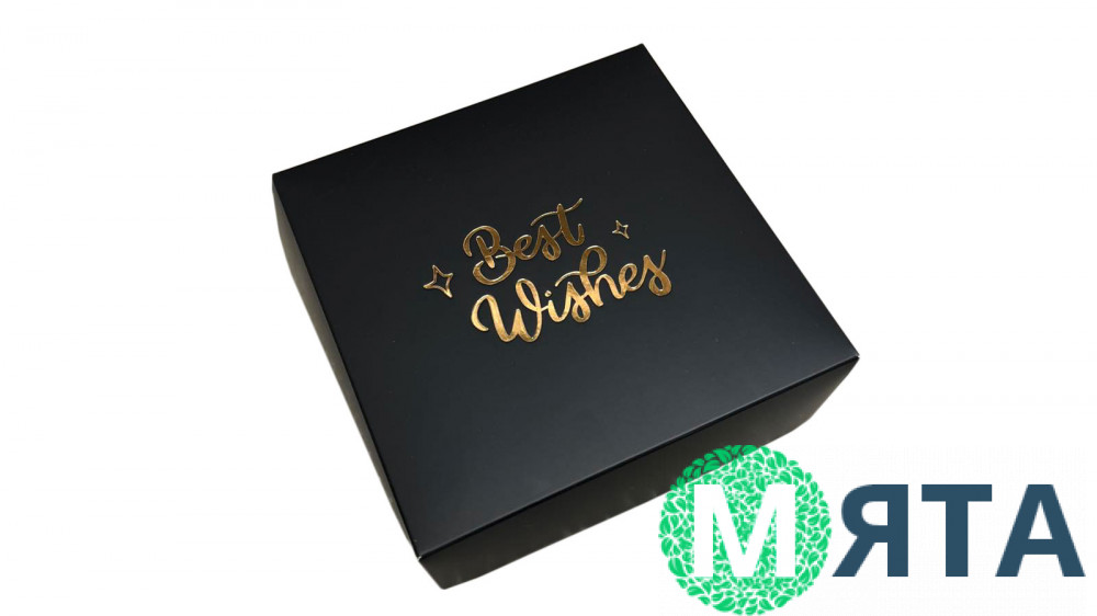 Чорна коробка 15х15х6 із золотим тисненням Best Wishes