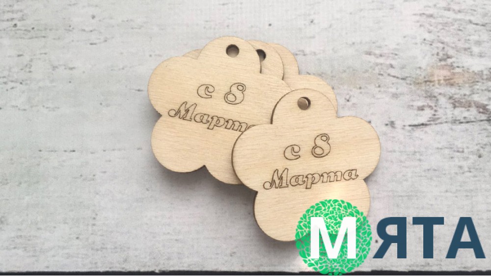 Дерев'яна бирка у формі квітки з гравіюванням З 8 Березня