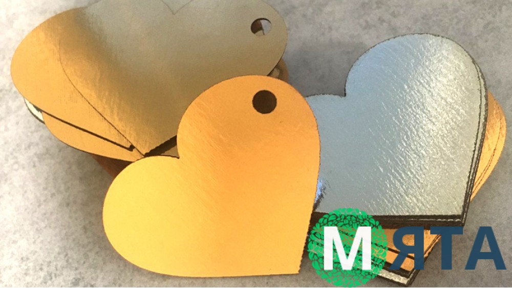 Сяюча бірка у формі серця з двостороннього ламінованого картону золото/срібло