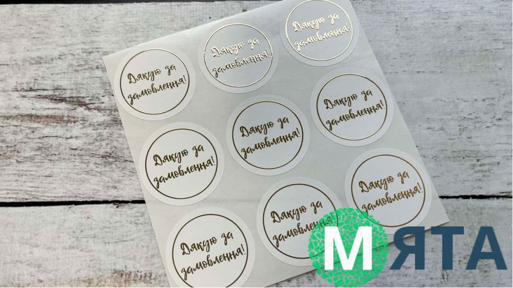 Паперові наклейки із золотим написом «Дякую за замовлення»
