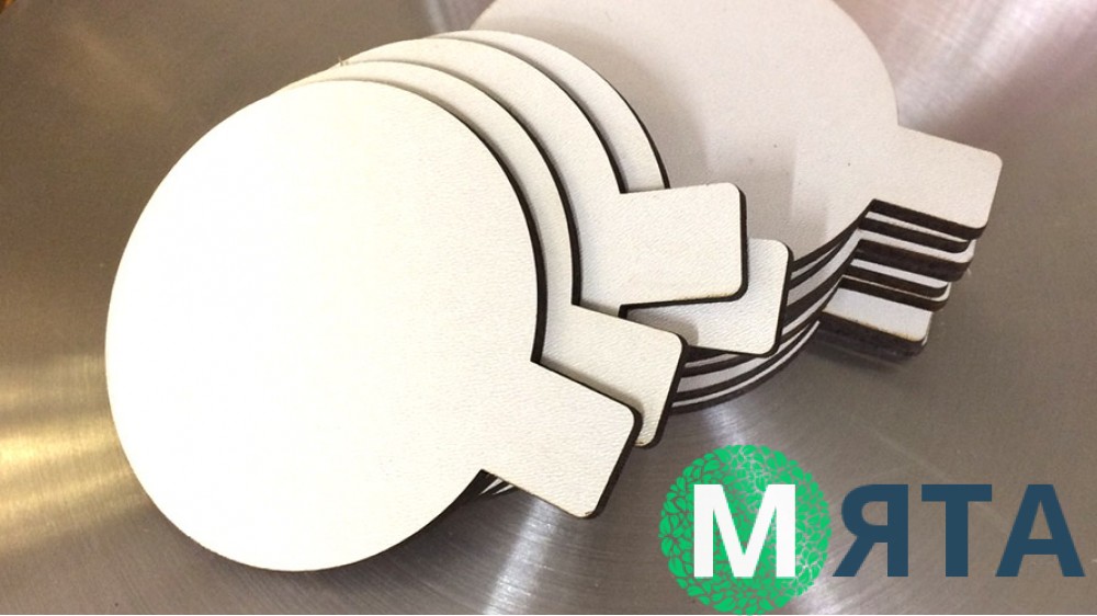 Круглі підставки для тістечок з ручкою з ДВП з білим покриттям.