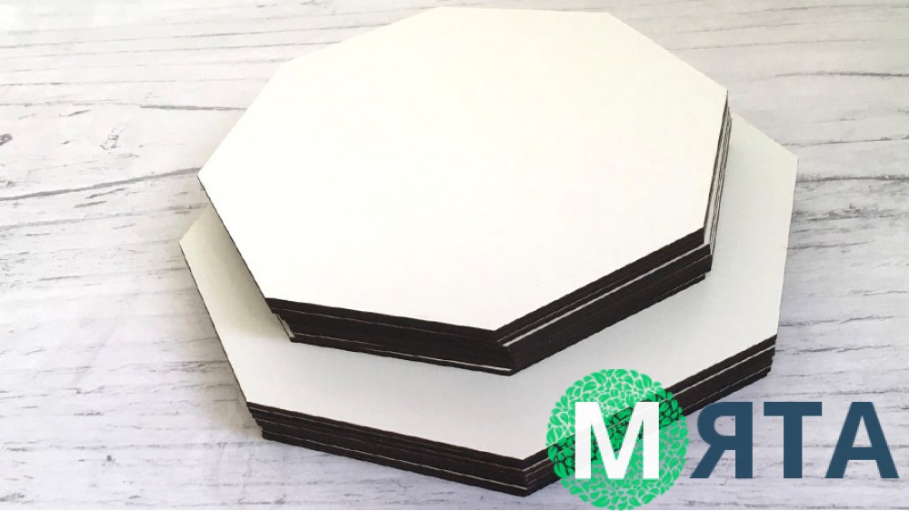 Щільні підставки для торта з ДВП з білим покриттям у вигляді восьмигранника.