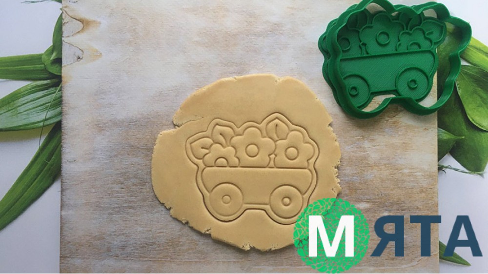 Вирубка + штамп Візок із квітами