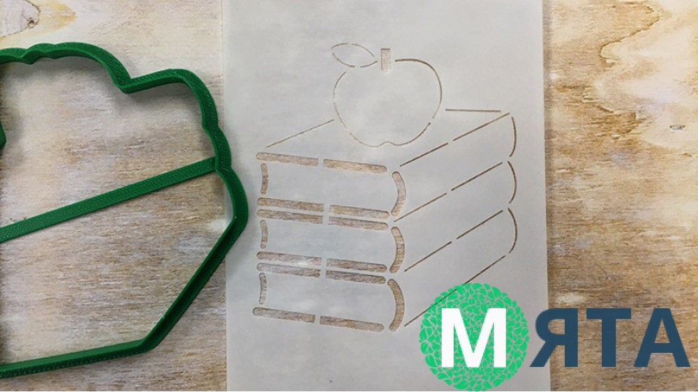 Вирубка + трафарет Книга з яблуком